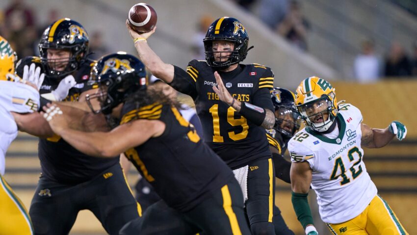 Hamilton’s defensive front got brought Fajardo down three times, and Julian Howsare even got a strip sack on the Edmonton pivot for his fifth sack in six games. Philip Ossai and Casey Sayles registered the other two takedowns for the Tabbies.