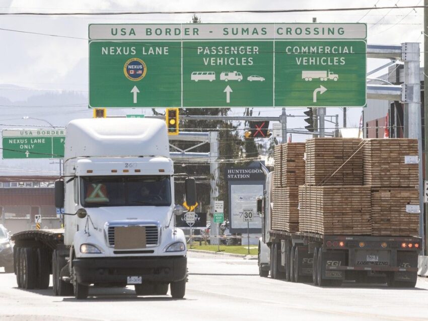 The Canada-U.S. border crossing near Abbotsford, B.C. in March 2025.