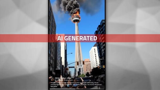 A fake video of the CN Tower on fire went viral on Facebook this week and experts say it’s another example of why social media platforms need to clearly mark AI-generated content.